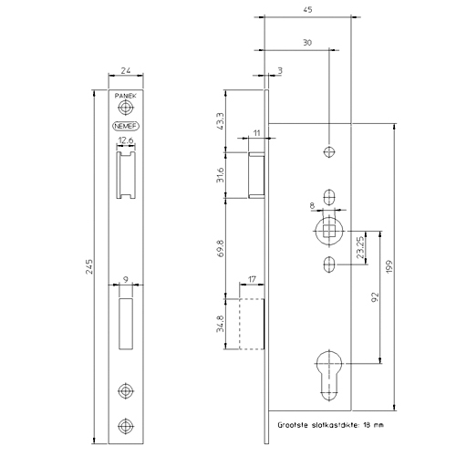 Nemef anti-paniekslot 9673/07-35 RS (voor kruk-kruk beslag)