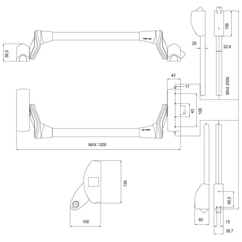 Duwbalk 3punts boven/onder en midden sluitend Duwbalk 3punts zijdelings sluitend Duwbalk 3punts boven/onder en midden sluitend
