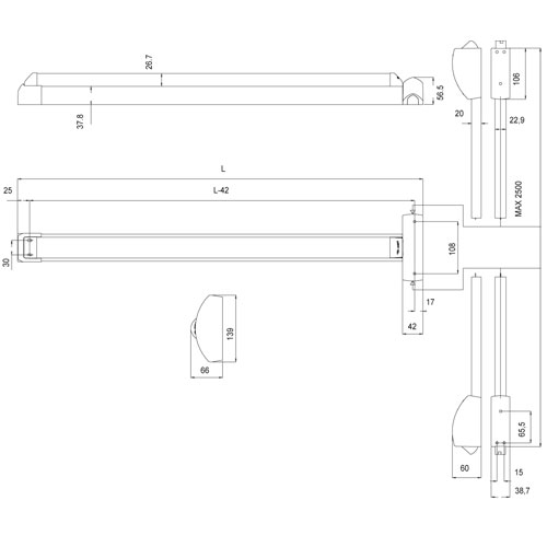 Paniekbalk 2punts boven/onder sluitend